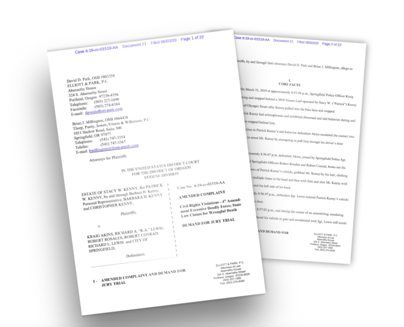 Barbara Kenny testified before the Oregon Legislature to the Joint Committee on Transparent Policing and Use of Force Reform on July 16, 2020. The meeting agenda page includes Barbara Kenny’s full statement and the family’s amended complaint.